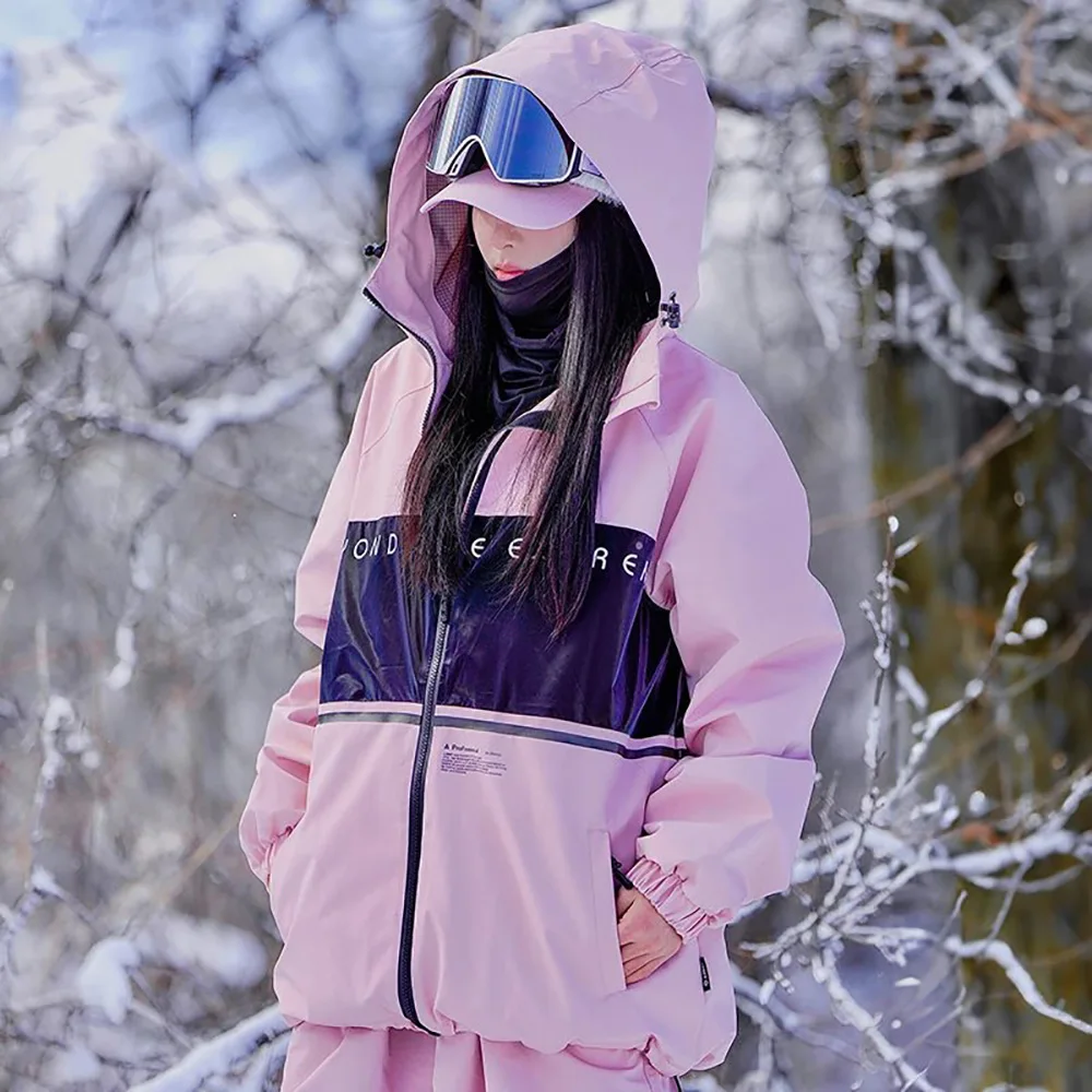 2025 Nuova tuta da sci in tinta unita da uomo Giacca da sci traspirante antivento da donna Sport per il tempo libero all'aperto Abbigliamento da sci con cappuccio con cerniera allentata