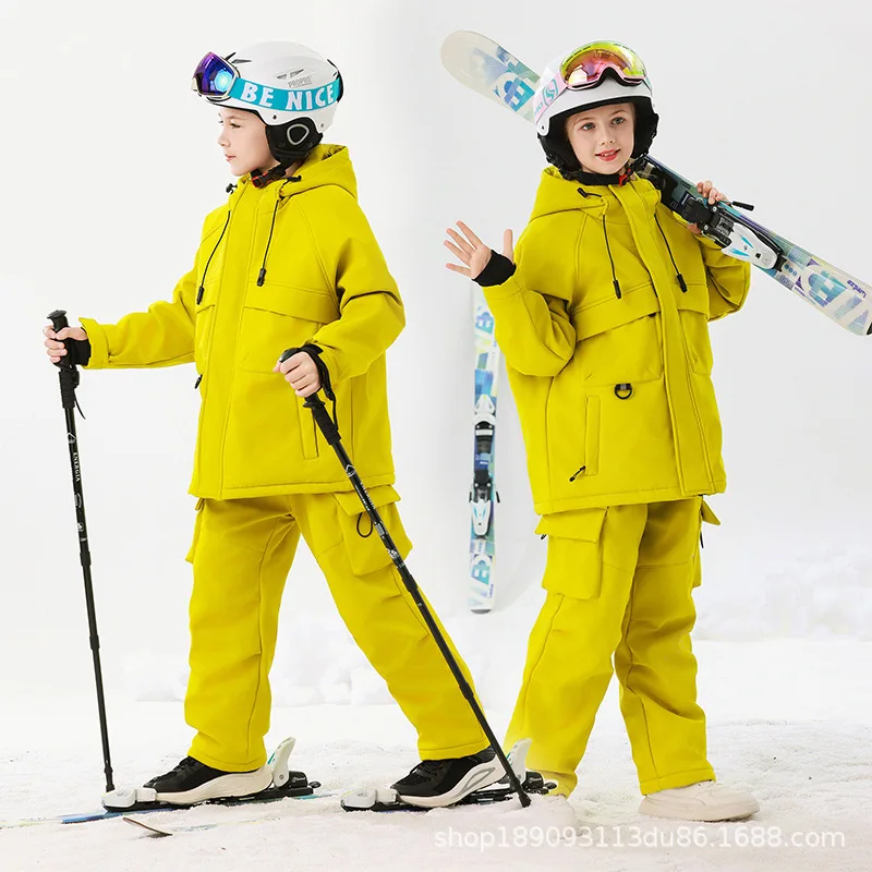 Nuova tuta da sci per bambini addensata impermeabile antivento solida giacca da sci calda pantaloni set ragazzi ragazze all'aperto equipaggiamento da neve snowboard