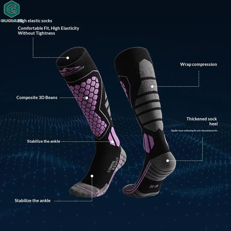 Calzini da sci caldi invernali Calzini da snowboard a compressione traspirante ispessita antiscivolo Calzini alti al ginocchio che assorbono l'umidità termica