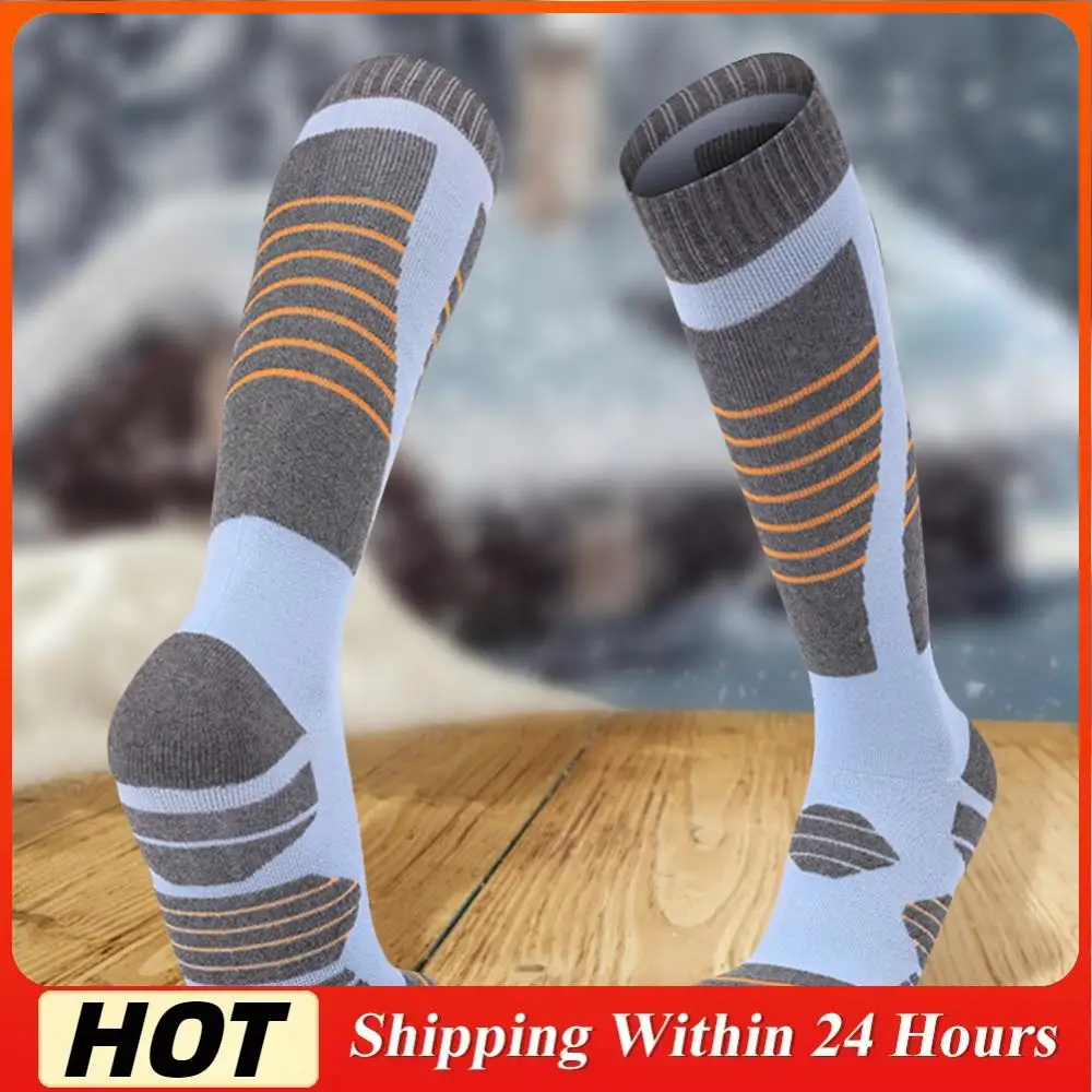 1 paio di calzini da sci, spessi e caldi, invernali, lunghi fino al ginocchio, traspiranti, in cotone, comodi, per sci, snowboard, corsa all'aperto