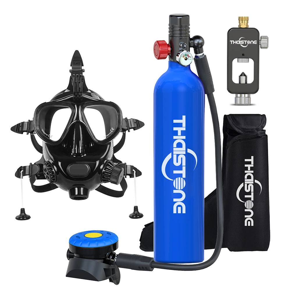THAISTONE Bombola di Ossigeno da 1L con Pompa Manuale + Maschera Subacquea per Immersioni e Snorkeling