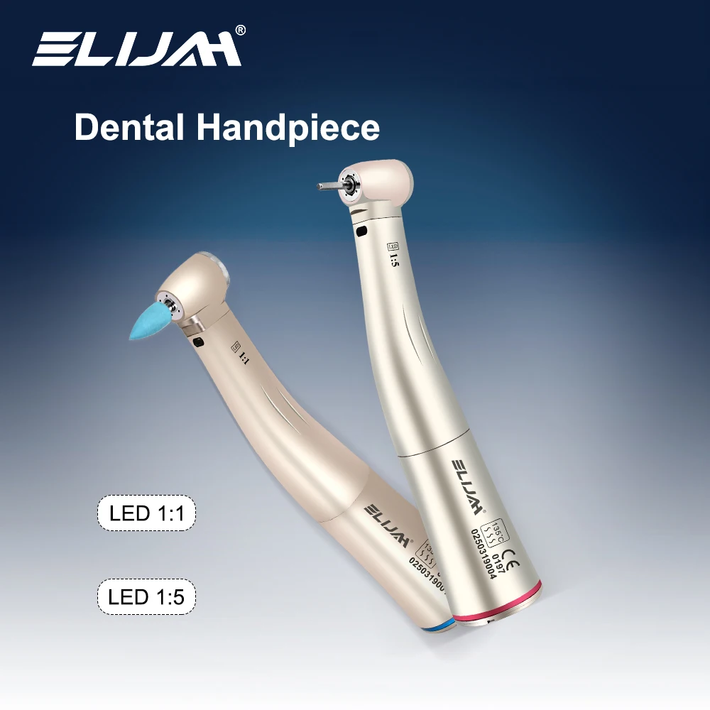 Fornitura di apparecchiature odontoiatriche a bassa velocità 1:1 manipolo contrangolo turbina ad aria leggera a LED anello blu in acciaio inossidabile fibra ottica 1:1