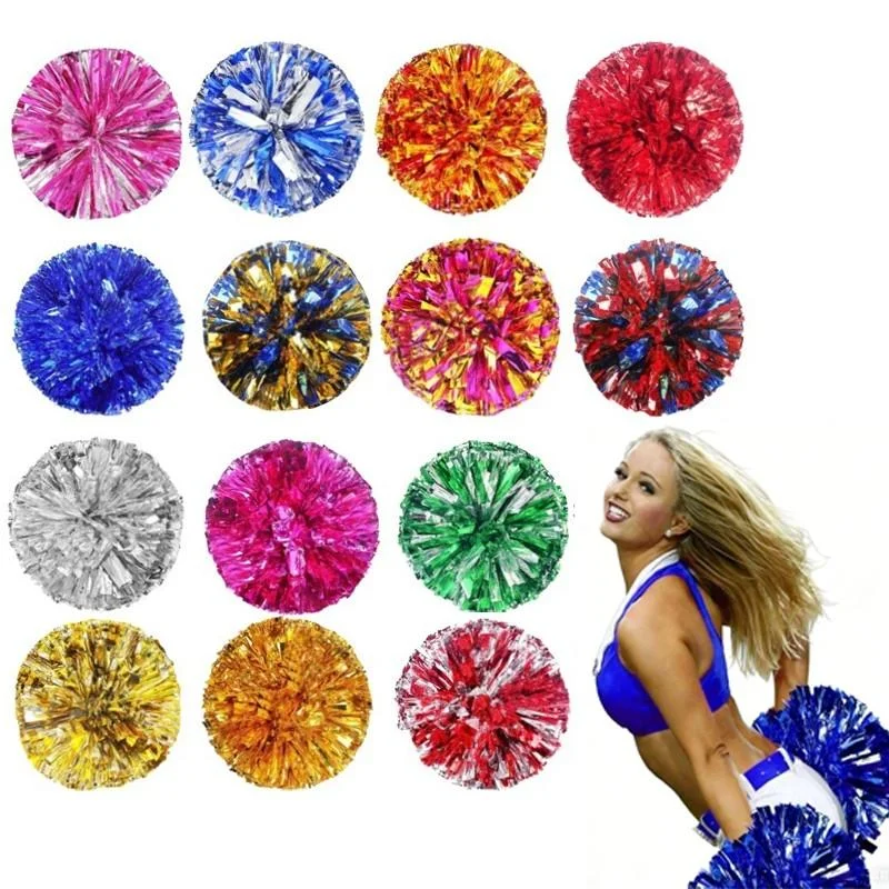 1 pz metallico PET Cheerleader Pom Ppom ragazza tifo danza decoratore Cheerleading Pompon Pompon Baton Hhandle colorfast