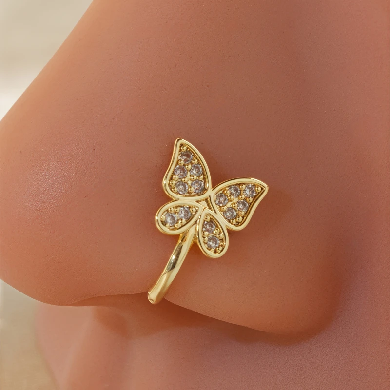 Set da 1 pezzo di fermaglio per naso in zircone a farfalla dolce e carino realizzato in materiale di ottone, stile francese europeo e americano non perforato