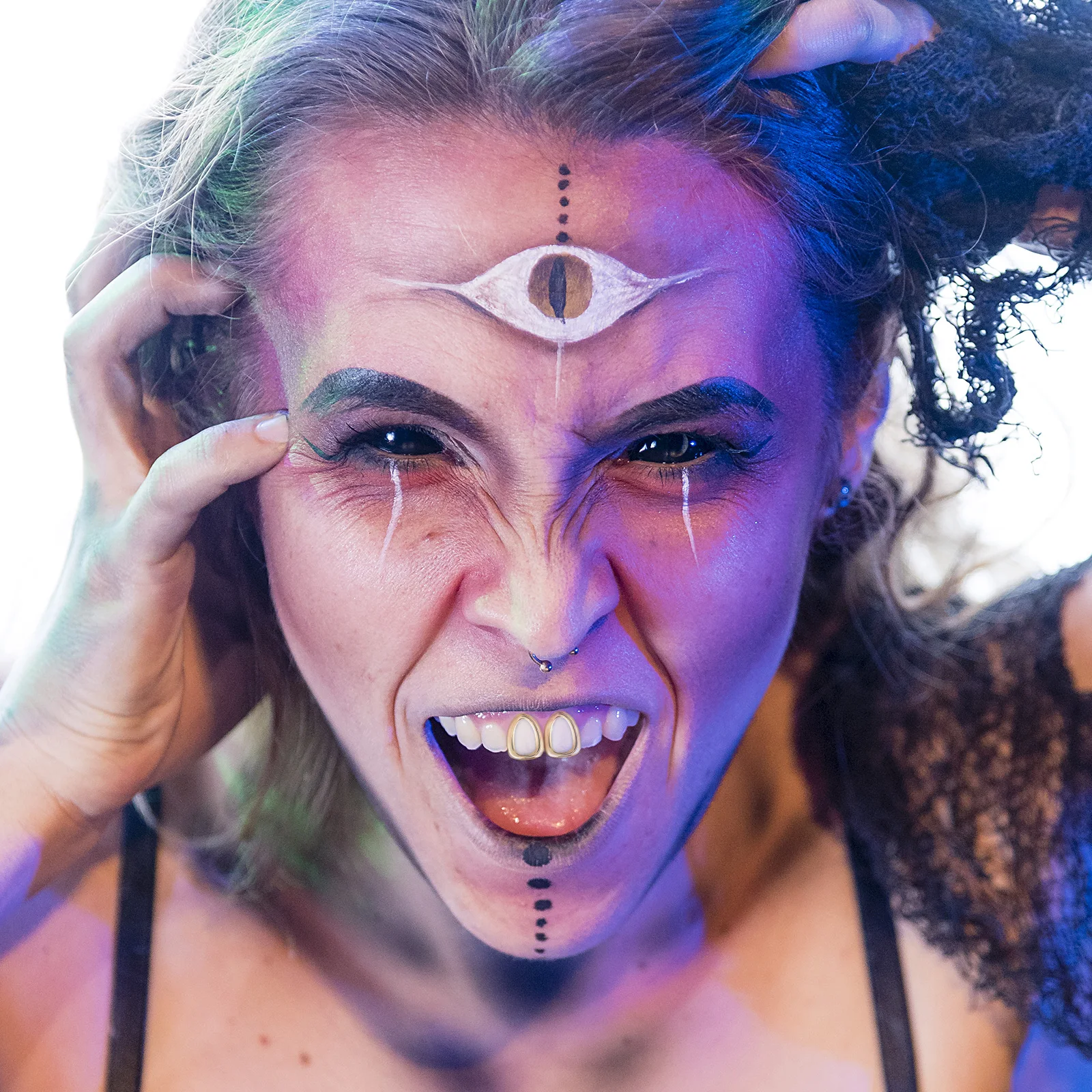 RACHELZ Hip Hop Singolo Classico Denti Cavi Grillz Semplice 3 Colori Lucidi Tappi per Denti Donna Uomo Gioielli Halloween Cosplay Regalo