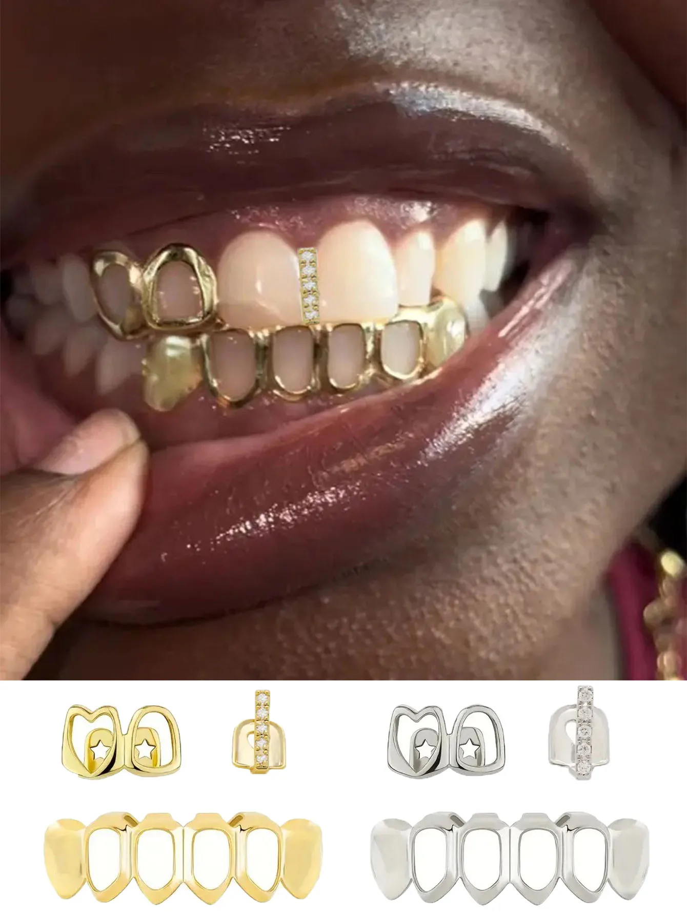 YOUNGX Cyber Punk Irregolare Hollow Star Dente Caps Per Le Donne Degli Uomini Y2K Geometrica Lucida Pentagramma Denti Grillz Gioielli Di Natale