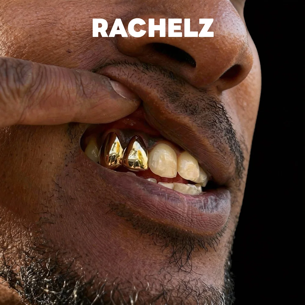 RACHELZ HipHop Classico Denti Singoli Grillz Tappi Dente Dorati Decor 14K Placcato Oro Griglie Dentali Gioielli Per Il Corpo Per Le Donne Degli Uomini