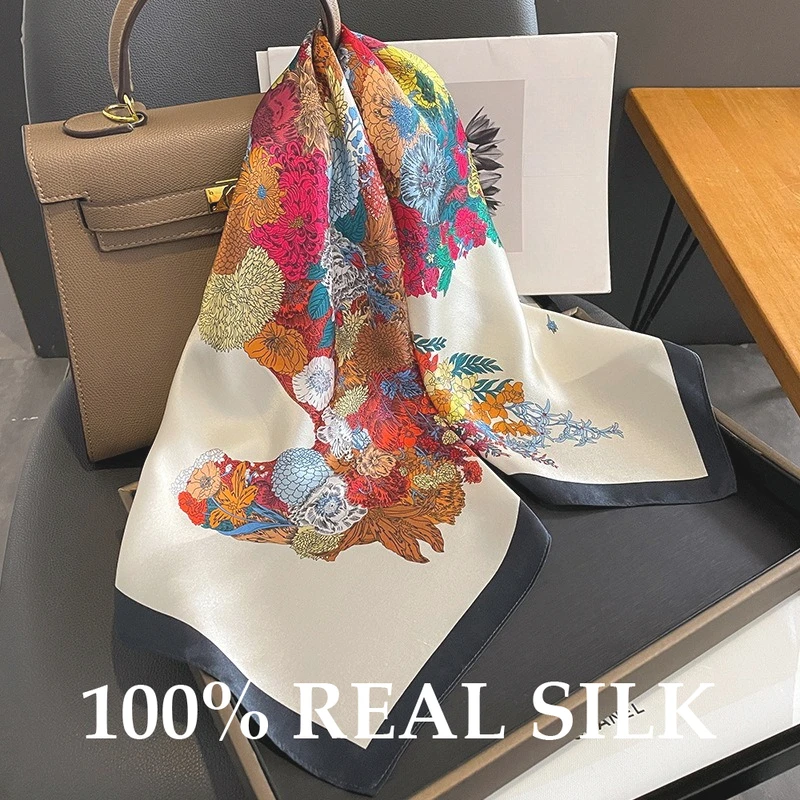 Sciarpa Quadrata 100% Pura Seta per Donne, Leggera e Traspirante, Ideale per Viaggi, Vacanze e Spiaggia, Hijab e Poncho Estivo