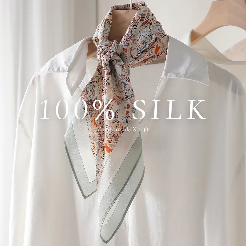 Sciarpa da donna 100% seta di gelso, fantasia Paisley etnica, in doppio crepe, quadrata, versatile, per collo o bandana