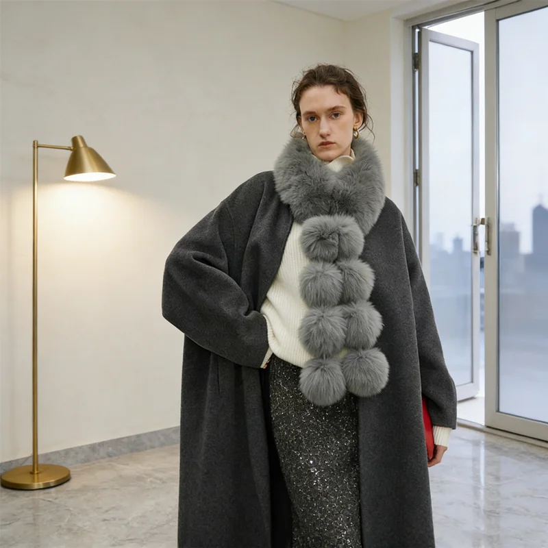 2026 NUOVO scaldacollo invernale in pelliccia da donna - Sciarpa lunga in pelliccia di volpe sintetica | Sciarpa da esterno morbida e calda, collo spesso in pelliccia sintetica