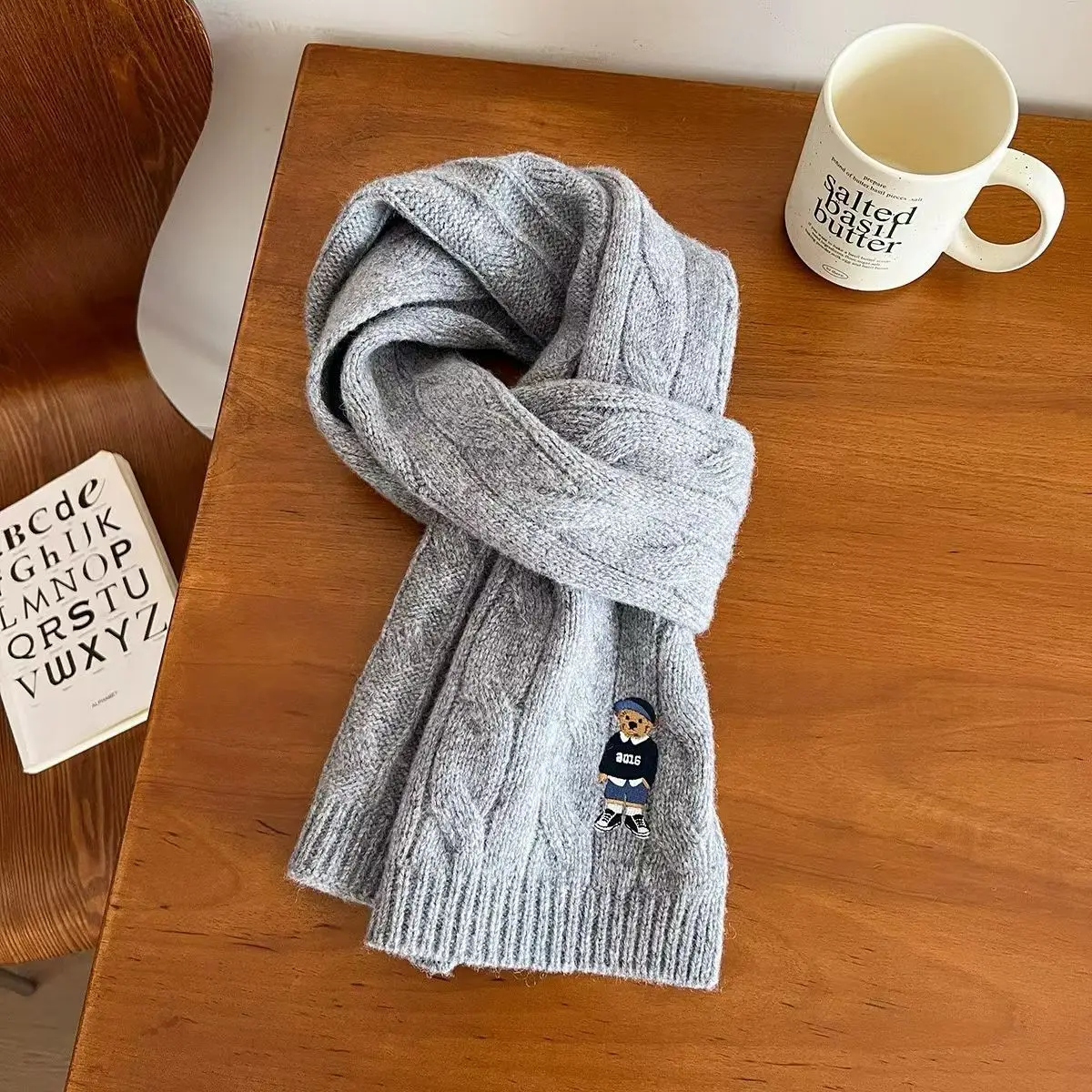 New Bear Wool Classic Twist Sciarpa retrò britannica da donna Inverno caldo ricamo Orso Coppia uomo Tendenza moda