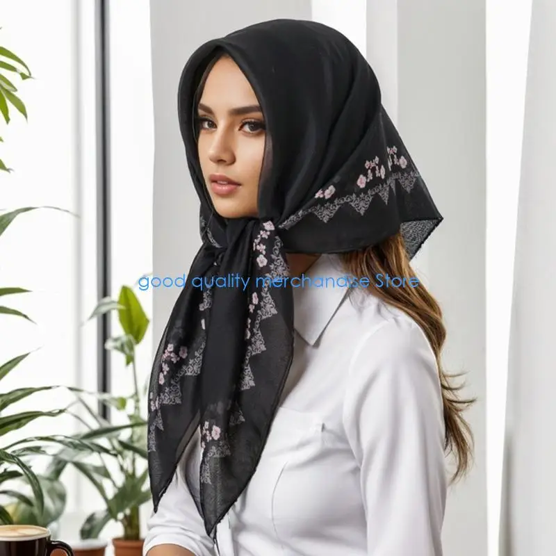 Sciarpa quadrata stampata floreale da 70 cm - Accessorio di moda in seta leggera per donna, elegante scialle avvolgente per la testa del collo