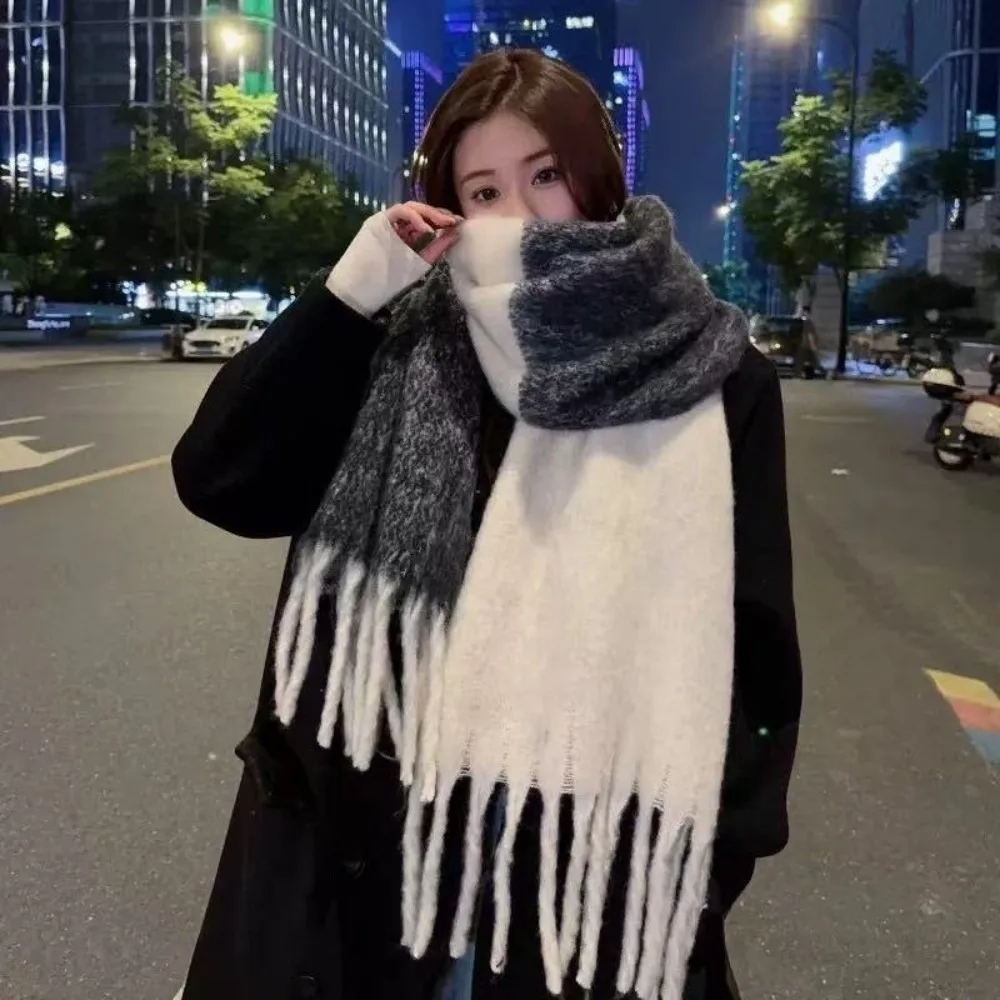 Sciarpa di lana scozzese retrò Mohair Nappa Addensare Sciarpe di cashmere invernali Tinta unita Peluche Scialle lungo Studente