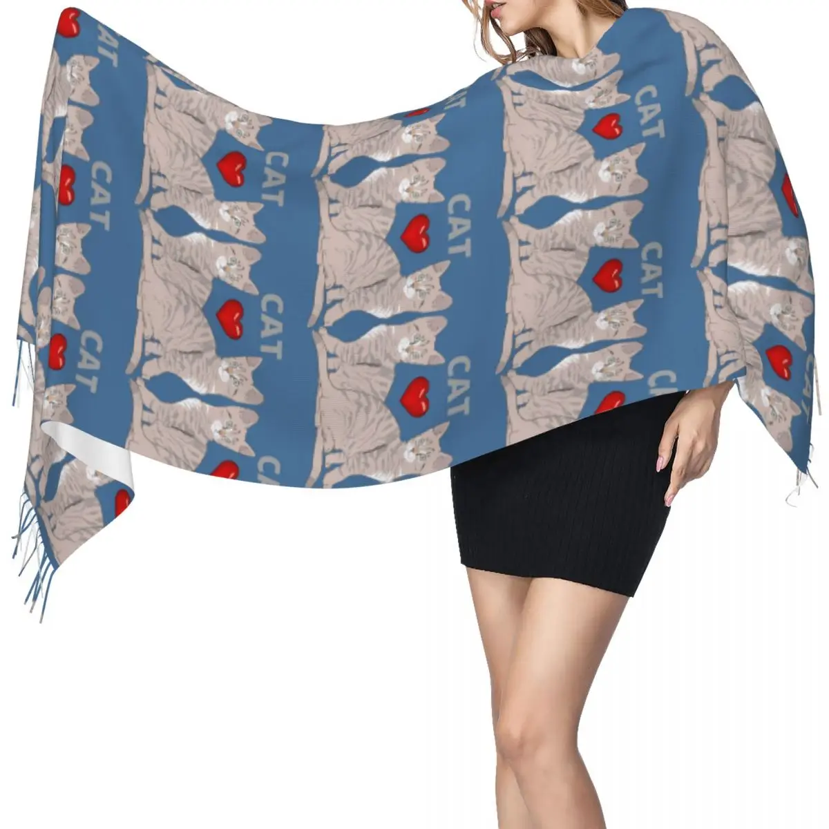 Sciarpa per gatti con zenzero grigio e gattini siamesi Sciarpe con nappe per donna Scialli e stole morbidi e caldi Scialle lungo autunno inverno