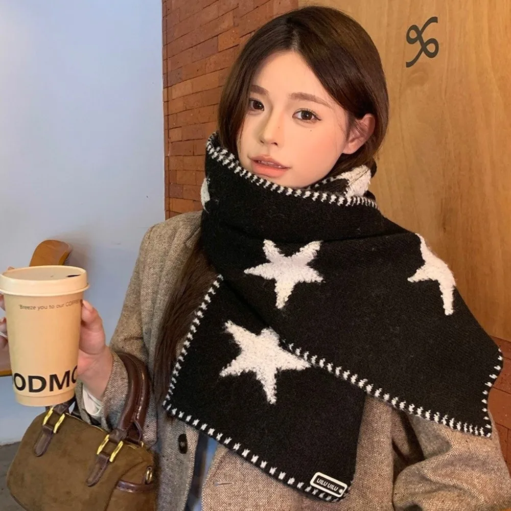 Sciarpa lavorata a maglia versatile e accogliente Sciarpa di lana calda con motivo a stella in morbido scaldacollo stile coreano per donna