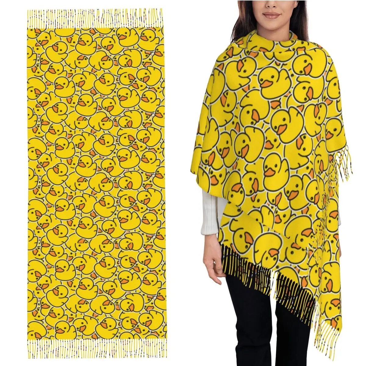 Sciarpa classica gialla in gomma con anatra Sciarpe con nappe per donna Scialli e stole morbidi e caldi Scialle lungo autunno inverno