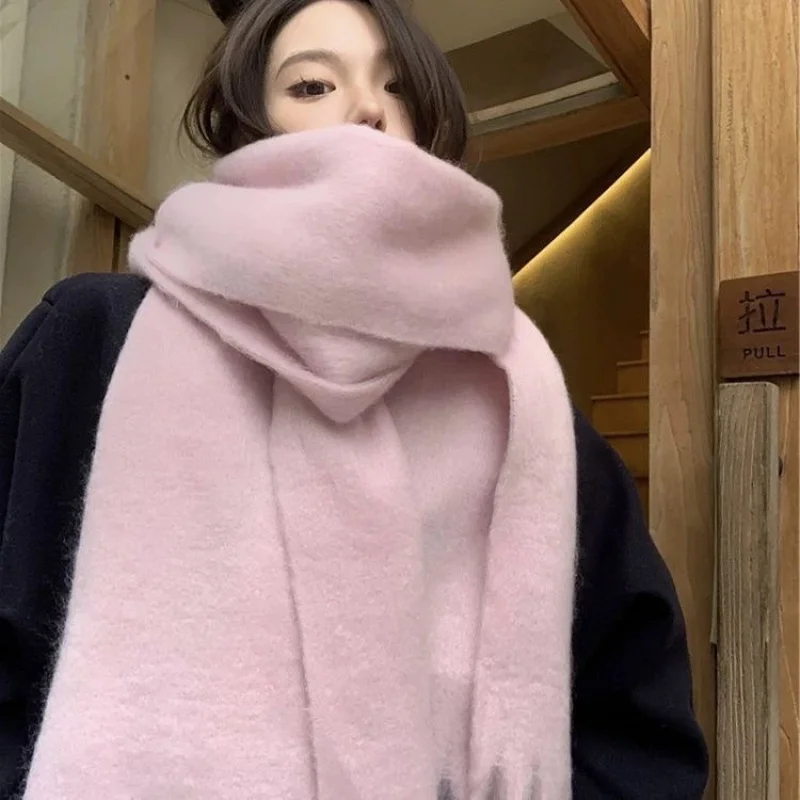 Sciarpa coreana in mohair Donna Inverno Sciarpe lunghe con nappe grandi Morbide protezioni per il collo calde in tinta unita e scialli avvolgenti Pashmina