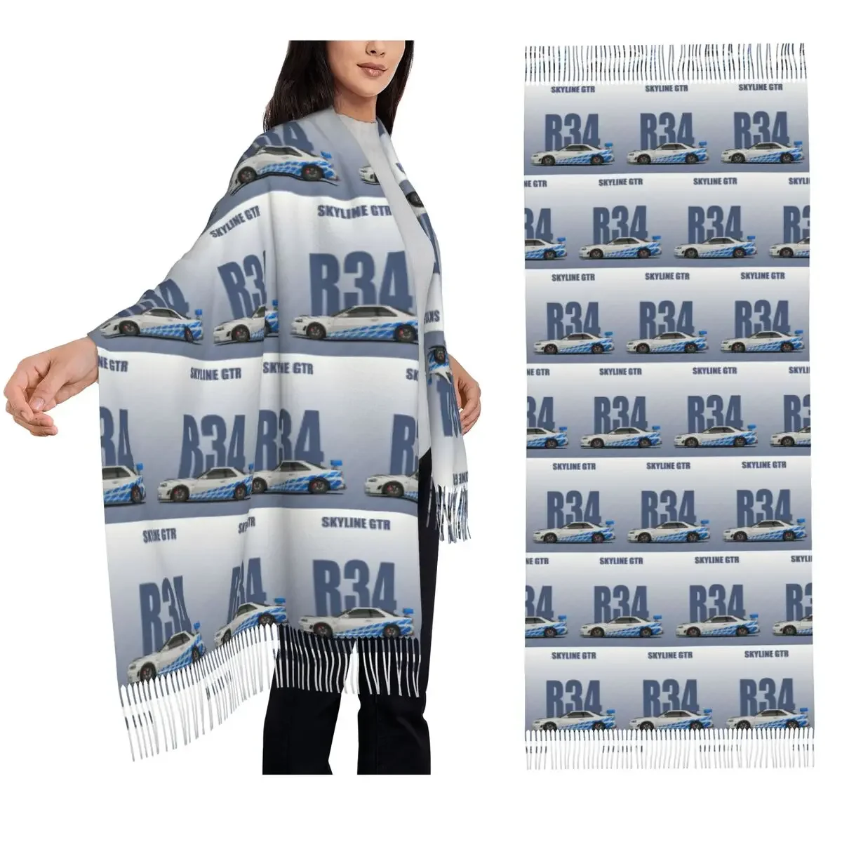 Skyline GTR R34 Sciarpa Sciarpe con nappe per donna Scialli e stole morbidi e caldi Grande scialle autunno inverno
