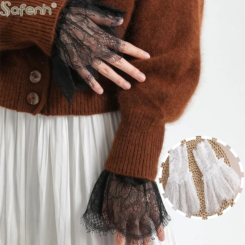1 paio di maniche decorative in pizzo, polsini decorati, maniche finte per abito da sposa, balze selvagge, maniche da polso, polsini pieghettati