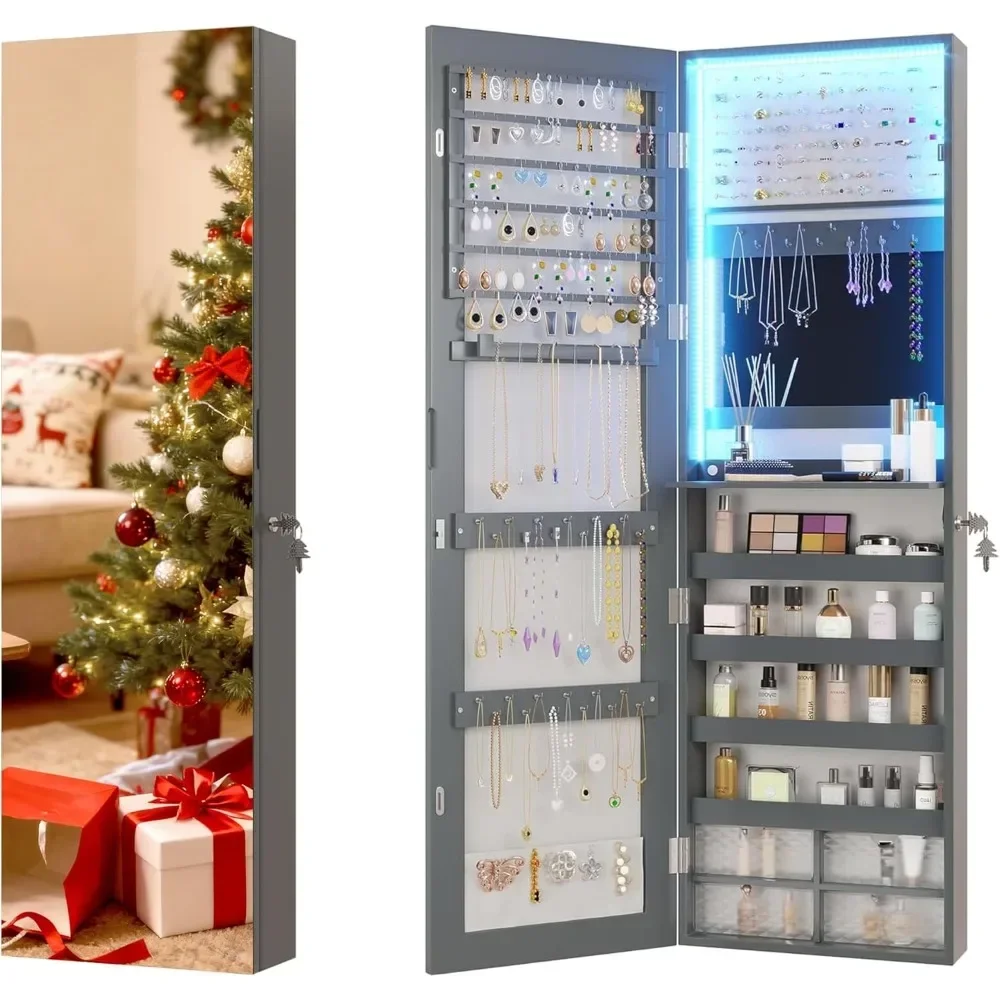 Armadietto portagioie a LED da appendere, armadietto portagioie con specchio da porta/parete, armadietto portagioie con specchio e serratura, armadietto portagioie con specchio e 3 ante