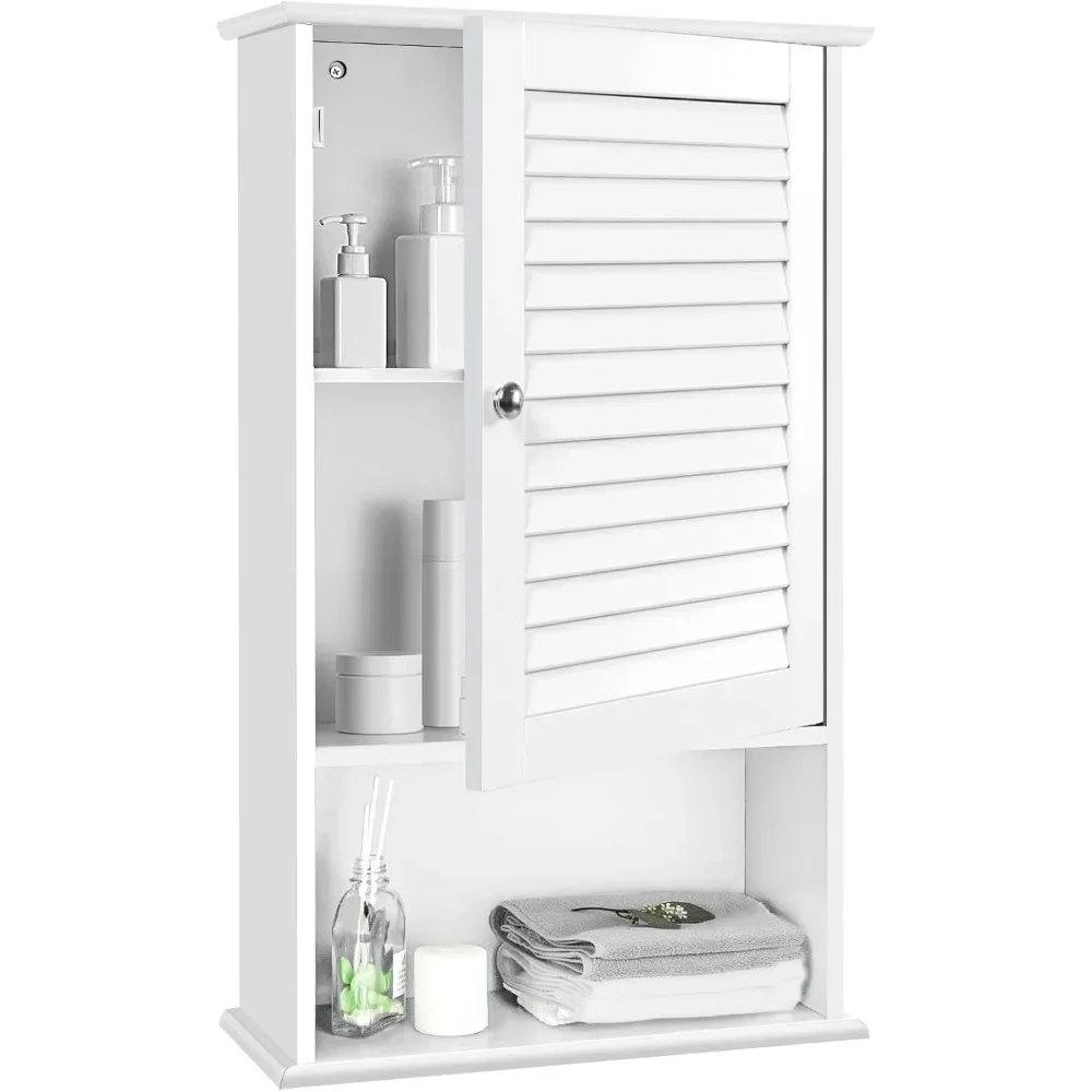 Armadietto da bagno sospeso con ripiano regolabile, bianco