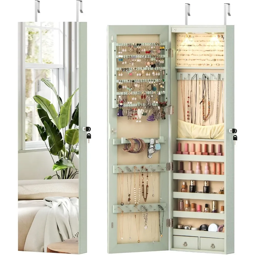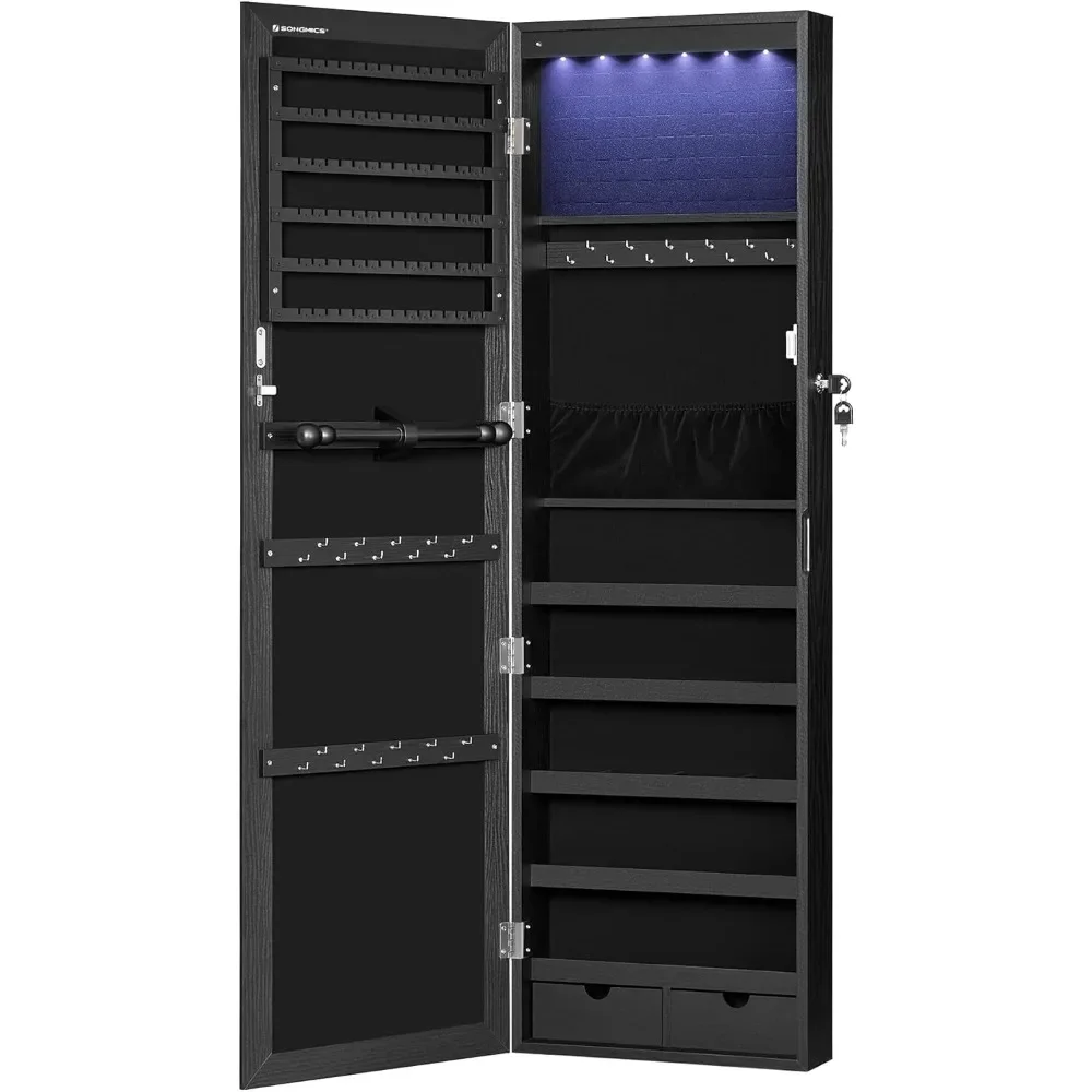 Armadio portagioielli sospeso con illuminazione a LED, scaffale per gioielli, montaggio a porta, regolabile in altezza, con serratura, altezza 120 cm