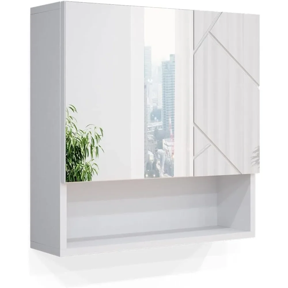 Mobiletto a specchio per bagno "Irma", Bianco Lucido, 54 x 55 cm