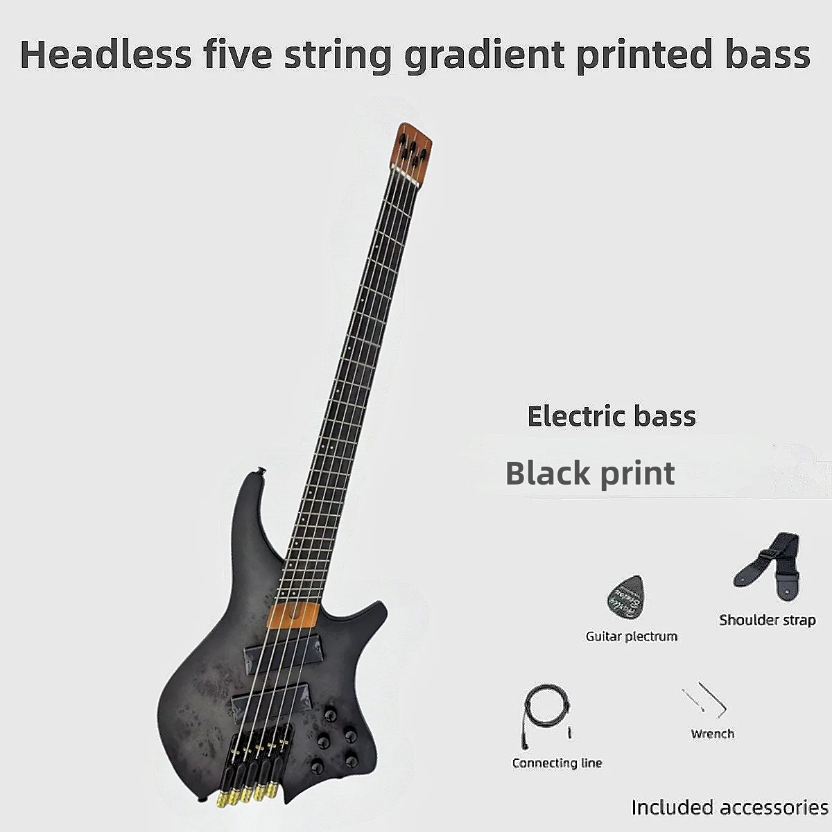 Basso elettrico nero stampato per performance professionali rock, a cinque corde, ultimo modello di basso elettrico di fascia alta