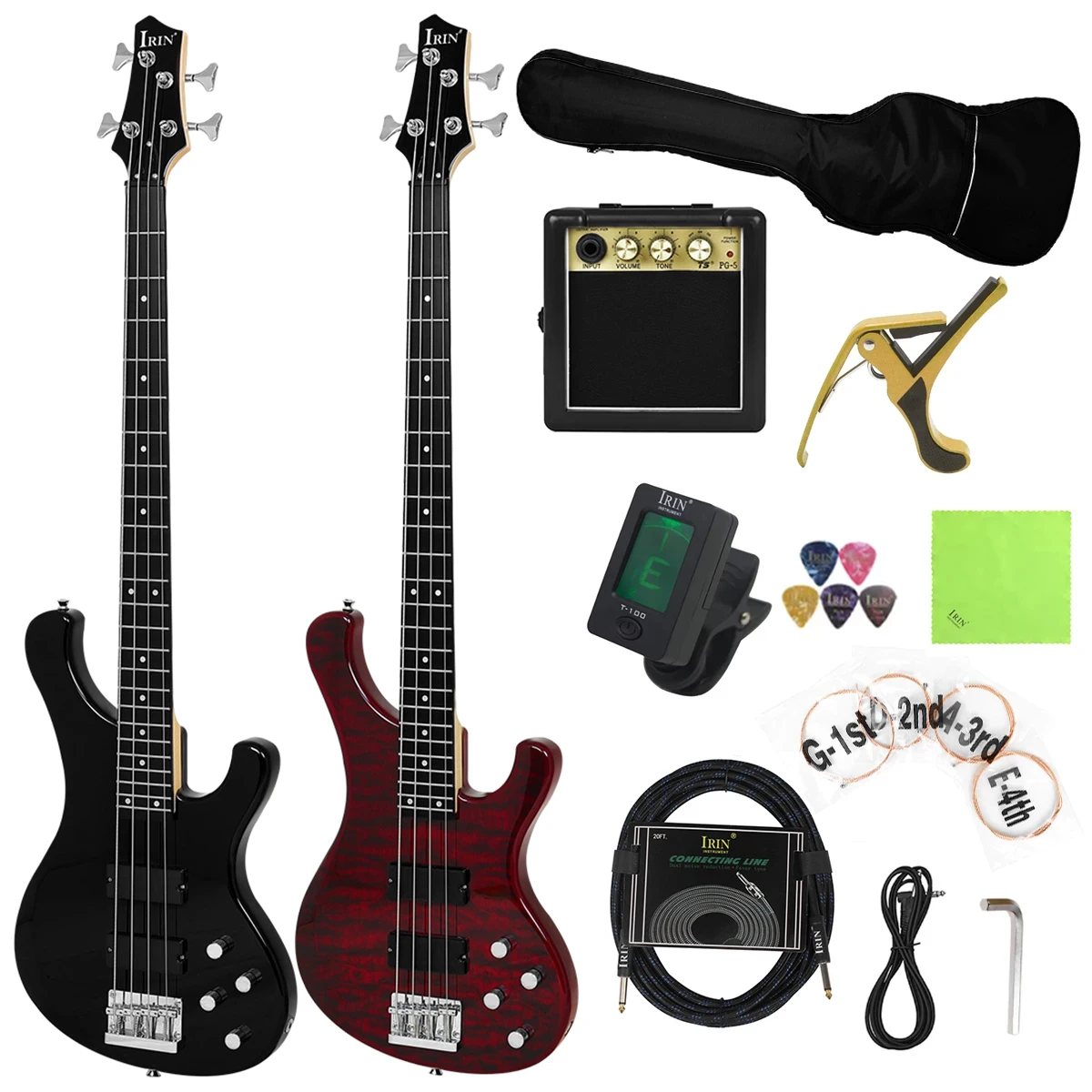 IRIN Basso elettrico a 4 corde 20 tasti Basso elettrico in tiglio con borsa Amp Capotasto Cinghie Cavo Parti e accessori per chitarra