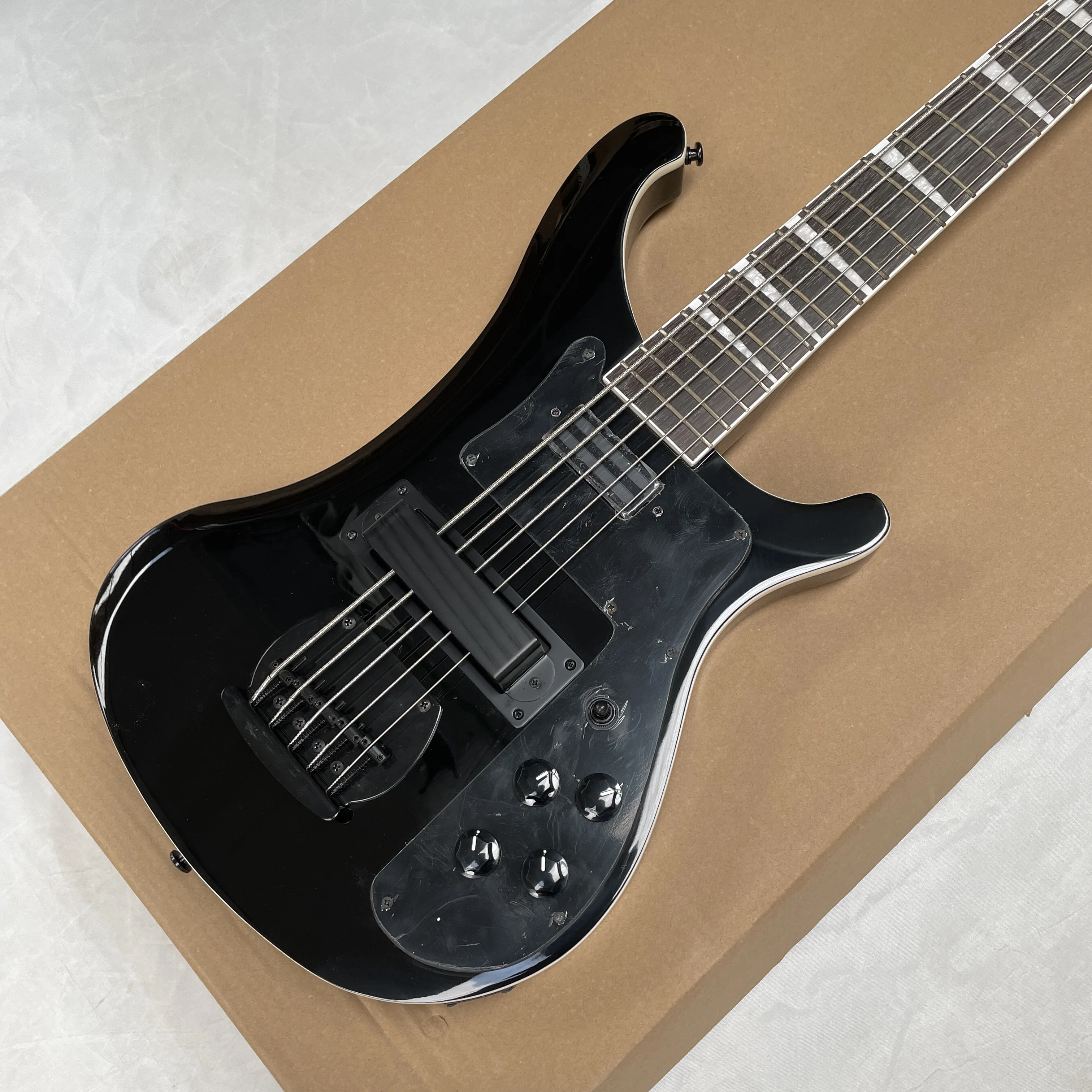 Basso elettrico a 5 corde, chitarre con tastiera in palissandro nere in edizione limitata, chitarra per performance dal vivo con manico interamente integrato nel corpo.