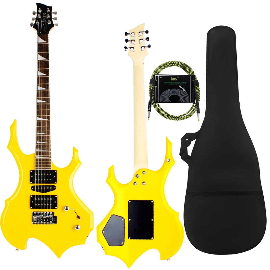 IRIN Chitarra elettrica con fiamma gialla 24 tasti Set di chitarra elettrica con corpo in acero Chitarra a 6 corde con tracolla per borsa Corde Plettri per amplificatori Parte