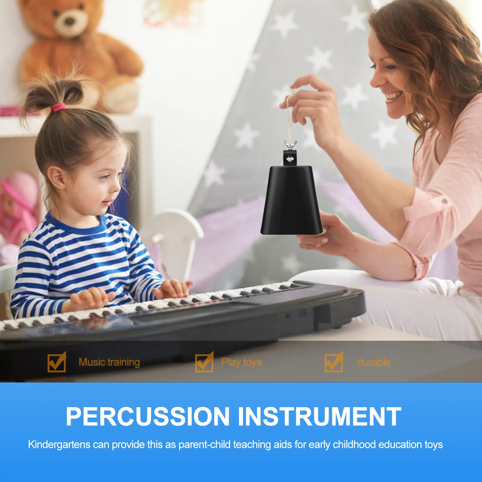 Campanaccio Musicale in Metallo, Strumento Portatile Piccolo per l'Insegnamento Musicale nella Prima Infanzia