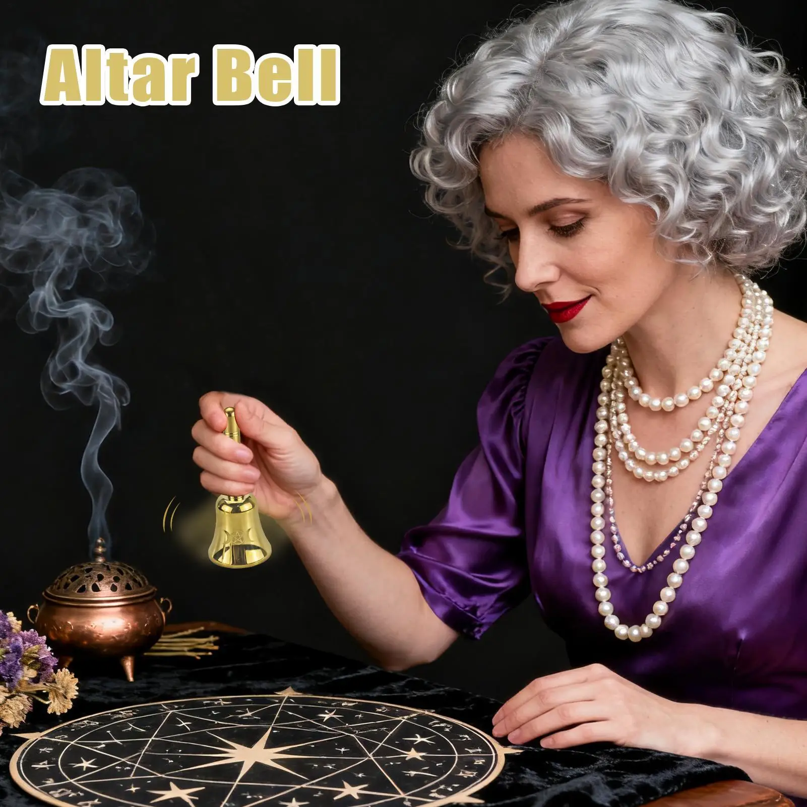 Campana a mano Altare in ottone massiccio Chiamata Campana Strumento musicale Anello di benedizione Campanaccio per bambini Natale Sporting Calcio Allenamento animale