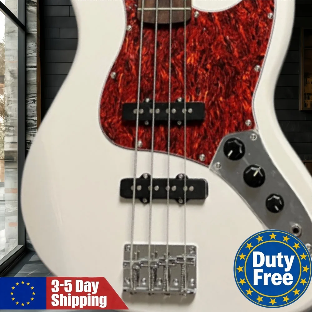 Chitarra Basso Bianca e Rossa da Magazzino Tedesco, Corpo in Legno di Ontano, Manico in Alloro, Pickup SS, Ponte Fisso, Professionale per Musica Rock