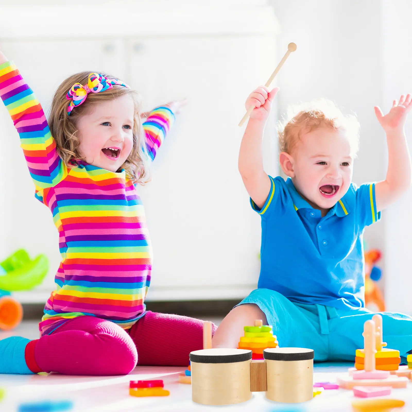 M MBAT Bongo Tamburo Bongo continuo Tamburo africano in legno massello Apprendimento precoce dei bambini Giocattoli musicali Strumenti a percussione