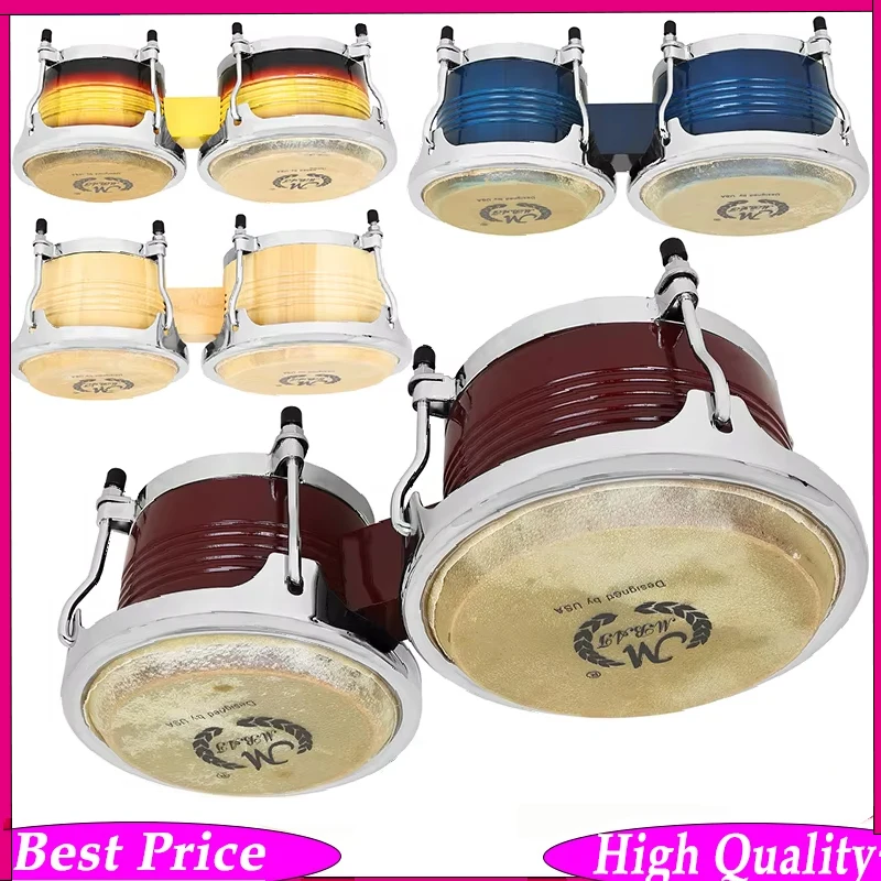 Bongo da 7+9 Pollici in Legno di Quercia, Lega di Alluminio e Pelle di Bufalo, Sicuro e Adatto per le Prestazioni, con Parti di Ricambio