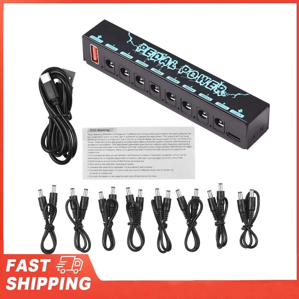 Alimentatore per effetti 8 uscite CC isolate Pedale per chitarra Alimentazione per chitarra isolata USB IN 5 V 2,1 A e 8 uscite CC 9 V e 1 USB OUT