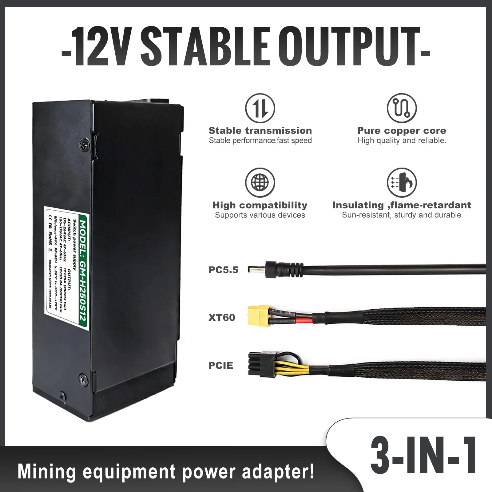 Un set di adattatori di alimentazione e spine per macchine di mining di criptovalute virtuali a blockchain