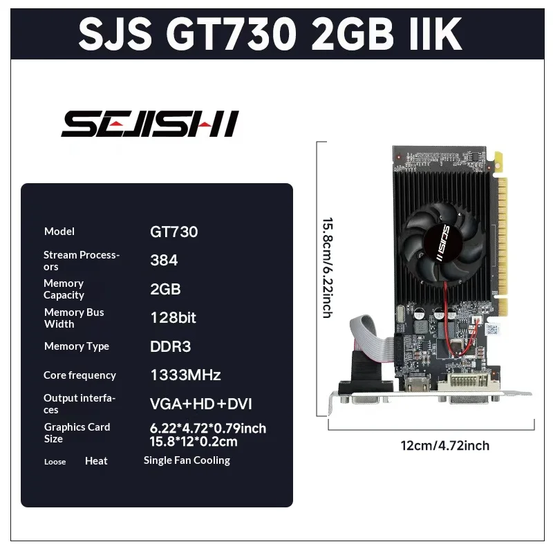GPU SEJISHI GT730-2G DDR3 IIK - Memoria DDR3 da 2 GB, design a basso profilo, installazione Plug & Play - Perfetto per uso aziendale e domestico