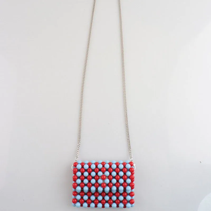 Borsa a Tracolla con Perline Primavera-Estate, Design di Lusso alla Moda, Mini Borse con Catena, Stile Retrò Americano, Semplice Borsetta con Perline per Donna
