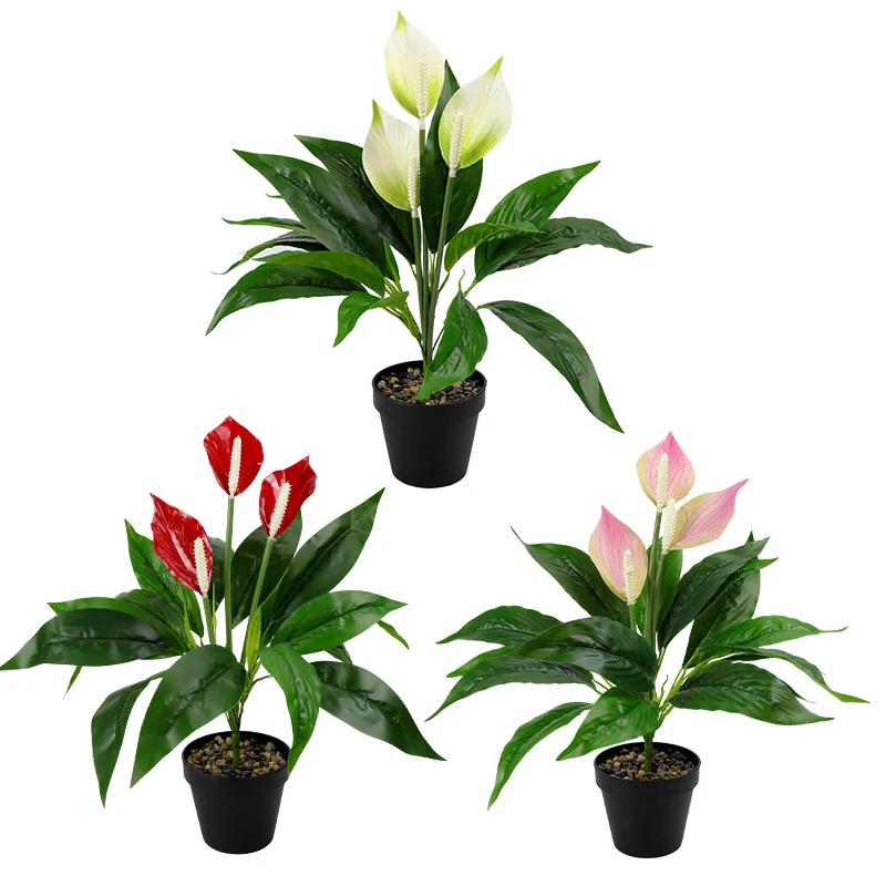 15 pezzi di piante verdi artificiali piante in vaso di anturi finti ornamenti per il desktop decorazione della casa decorazioni per la sede di nozze fiori finti