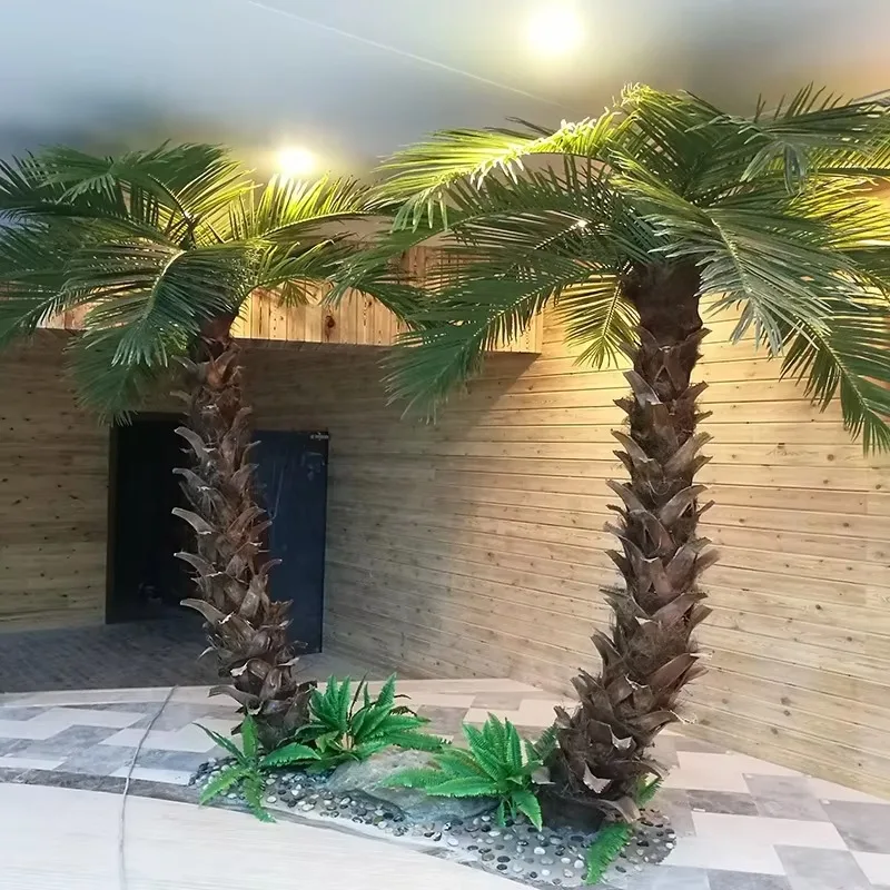 Palma artificiale grande Simulazione Palma in fibra di vetro Palma finta per esterni resistente ai raggi UV per l'arredamento del parco