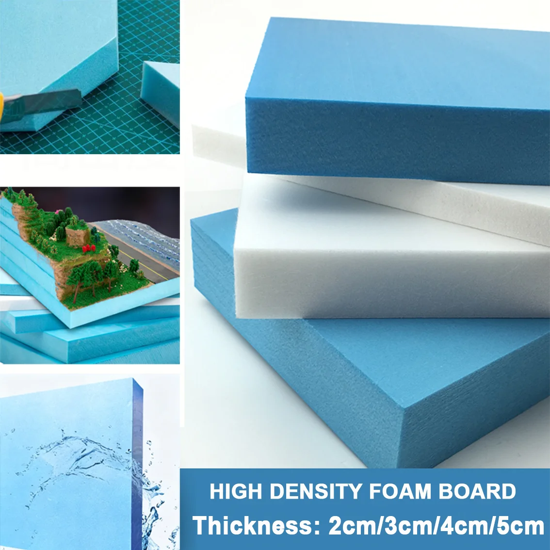 1/2/3 pezzi kit di schede di schiuma artigianale fai da te blu/bianco spessore 2 cm 3 cm 4 cm 5 cm piastra di base per paesaggi di terreno ad alta densità per la realizzazione di modelli