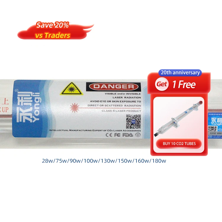 Tubo laser CO2 professionale 35W75W 90W 100W 130W 150W 160W 180W 1064nm Lunghezza d'onda per macchine da taglio industriali