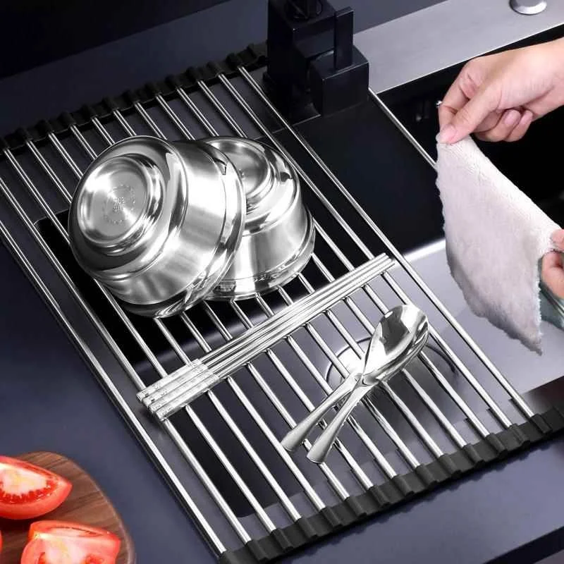 Cestello di scarico per lavello da cucina Rete di scarico espandibile Tenda di scarico Ra Bacino per verdure Tappetino di scarico multistrato