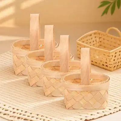 Cesto intrecciato a mano da 4 pezzi, cesto portatile per composizioni floreali, contenitore per la conservazione di regali, contenitore per la conservazione di articoli per la casa, per matrimoni e feste