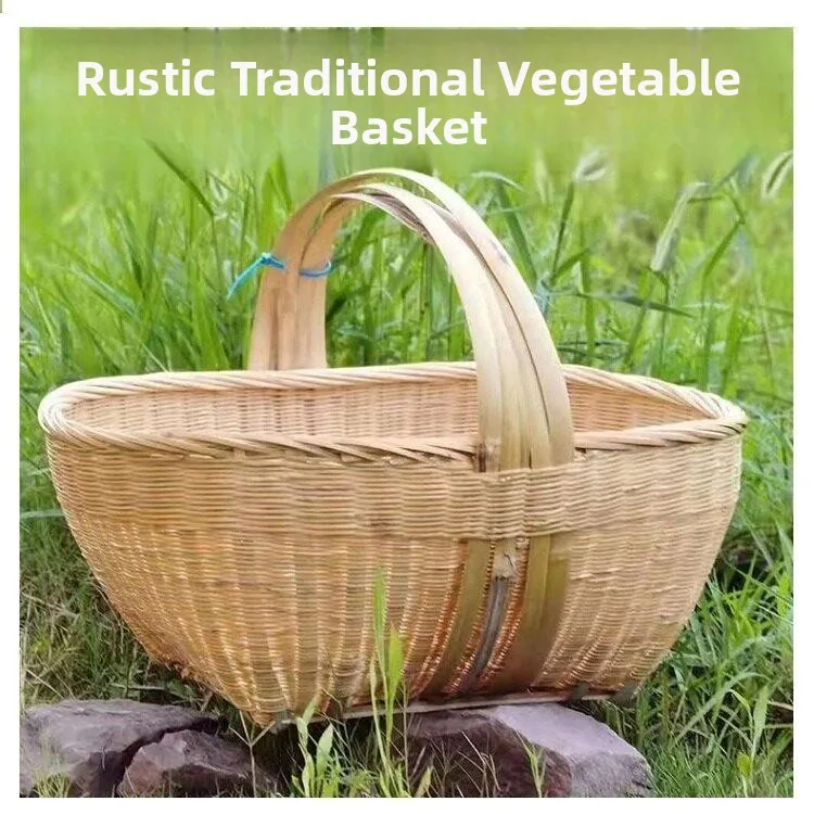 Cesto Portatile in Bambù Stile Rurale Tradizionale, Cesto Intrecciato a Mano in Bambù per Offerte e Conservazione Frutta