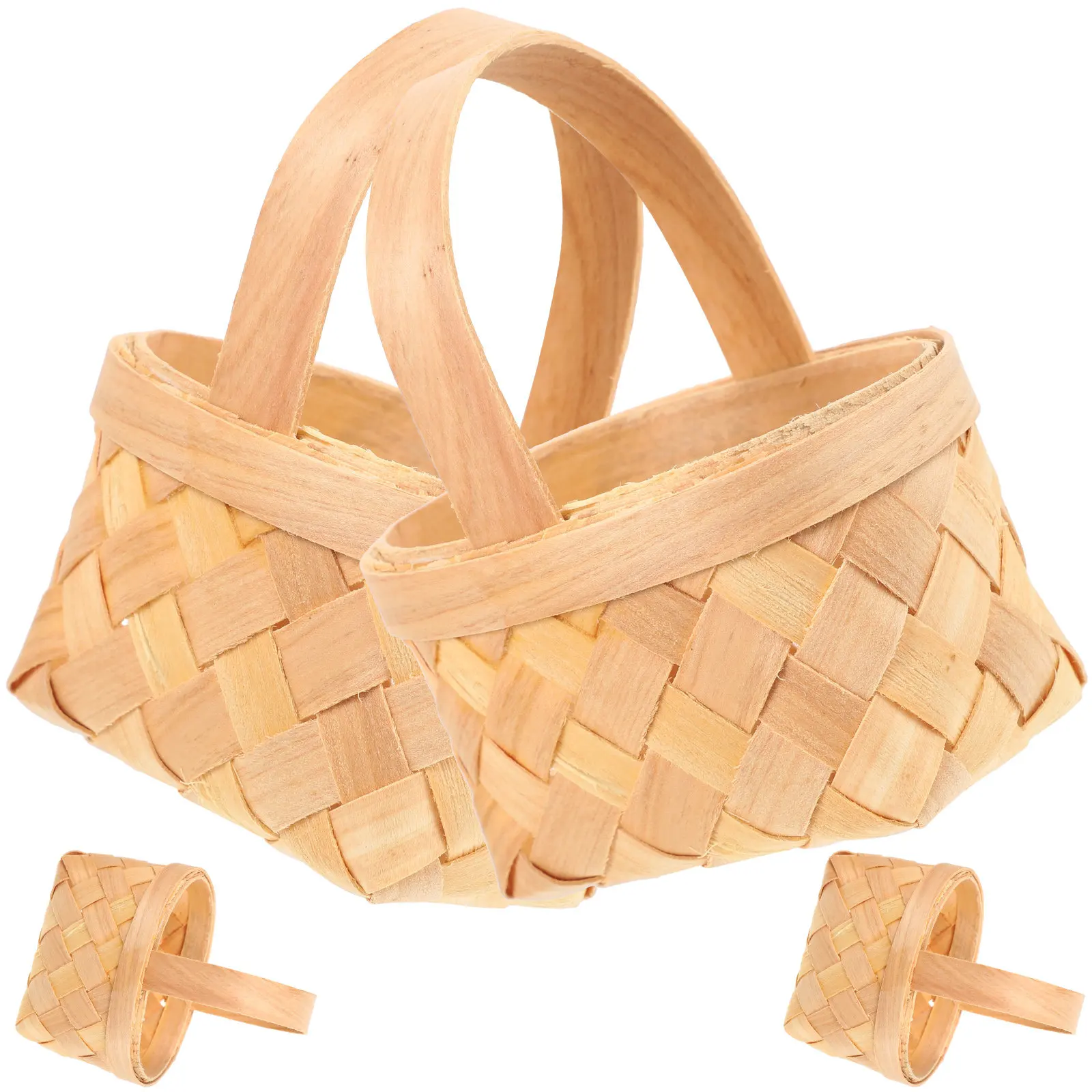 Set di 4 Cesti in Legno Naturale, Lavorazione Artigianale, Cesto Intrecciato per Composizioni Floreali, Decorazione Casa, Giardino, Feste, Banchetti, Regalo