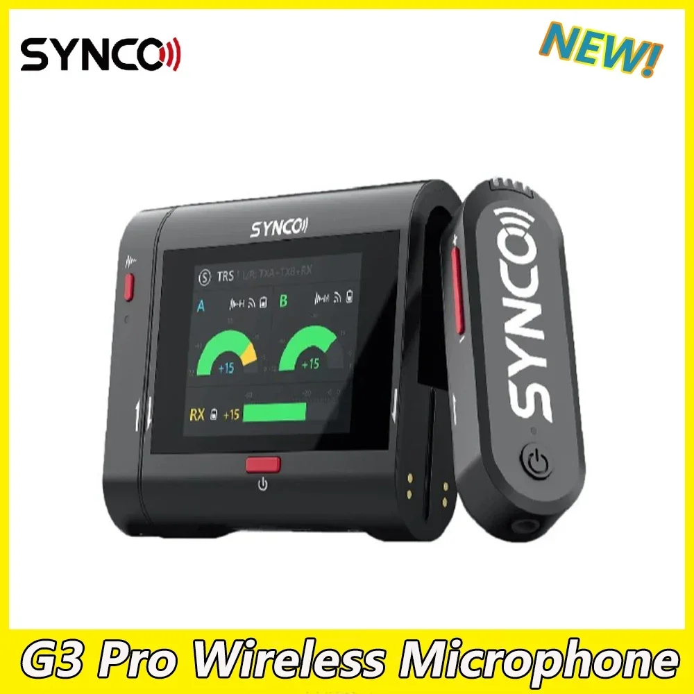 Microfono wireless SYNCO G3 Pro 2,4 GHz Portata 200 m Audio senza perdita con touch screen da 1,8" per telefono con fotocamera
