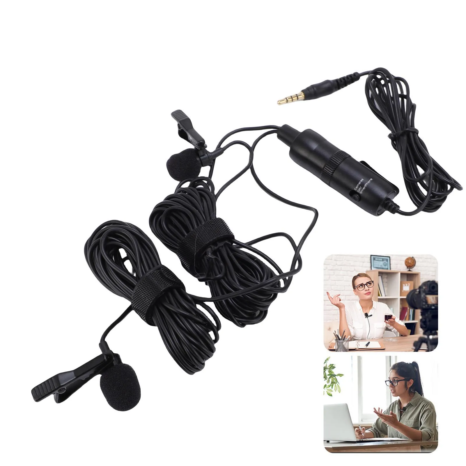Microfono lavalier doppio con clip cablata sul microfono da bavero Microfono per interviste con registrazione professionale per due persone Microfono lavalier cablato